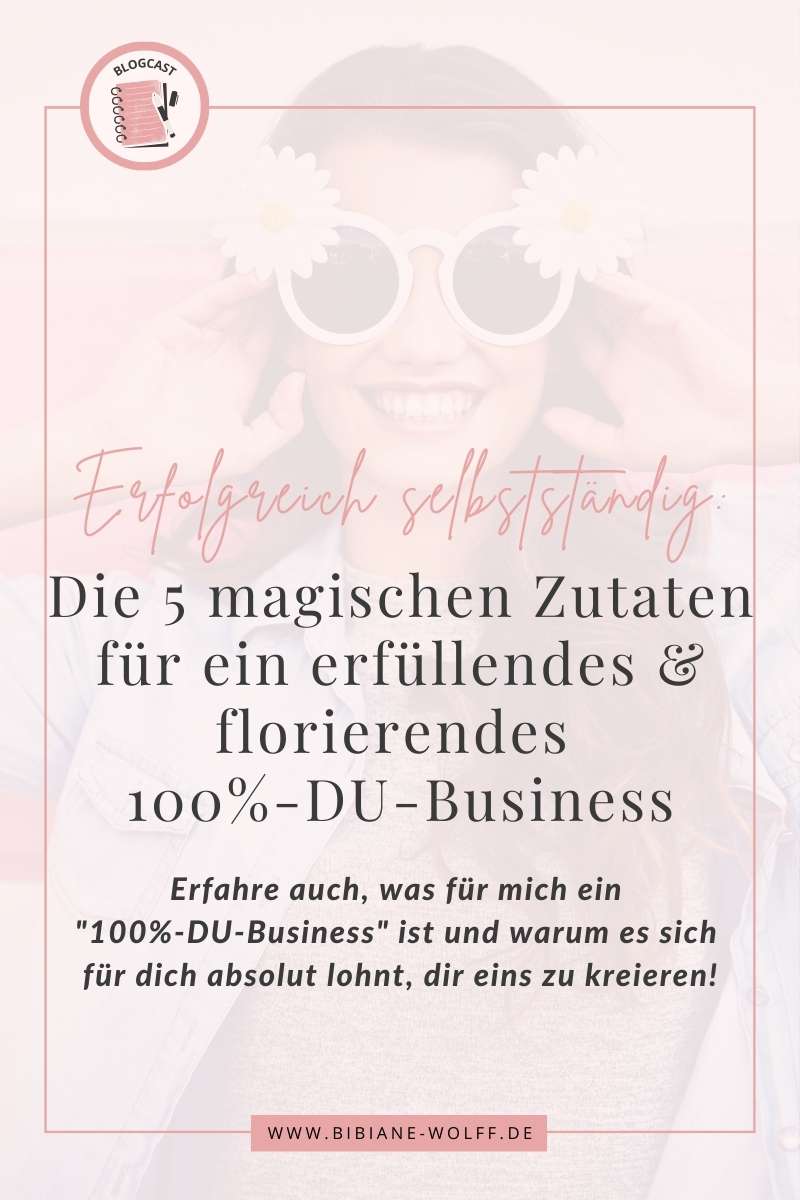 Denn heute verrate ich dir – anhand von Erfahrungen meiner Kundinnen und mir – die 5 magischen Zutaten, die es braucht, um dir eine erfolgreiche Selbstständigkeit aufzubauen und so ein erfüllendes und florierendes 100%-DU-Business zu führen.